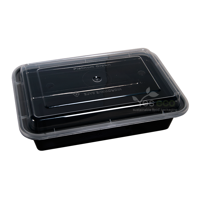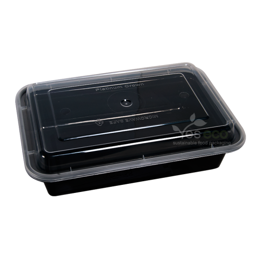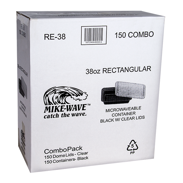 Our 38oz MikeWave™ Microwaveable containers rectangular with black bottom are made out of virgin PP material which creates extra smooth an elastic surface.